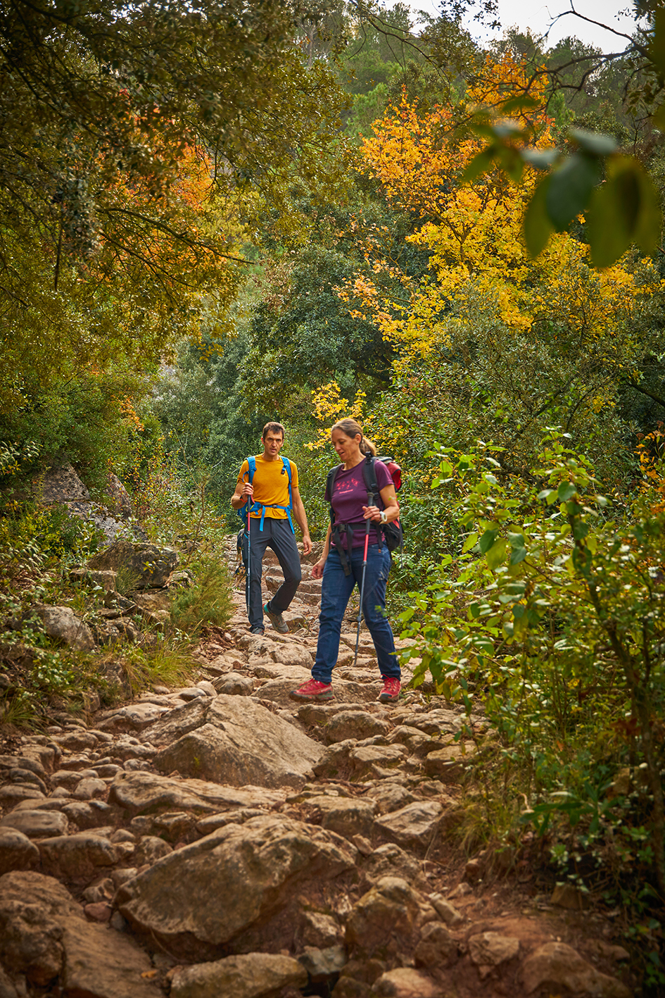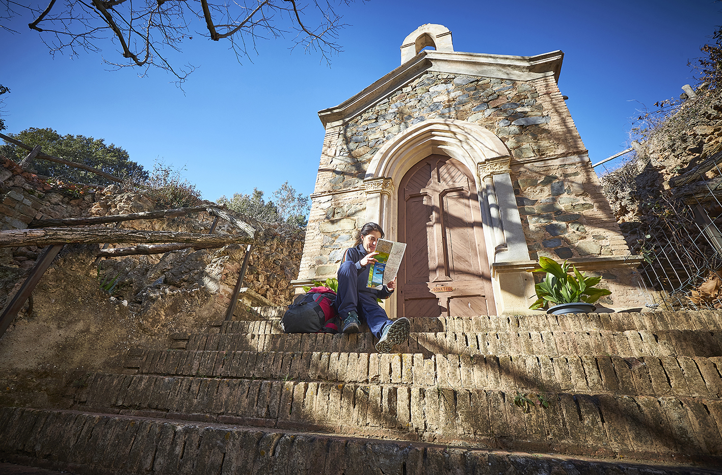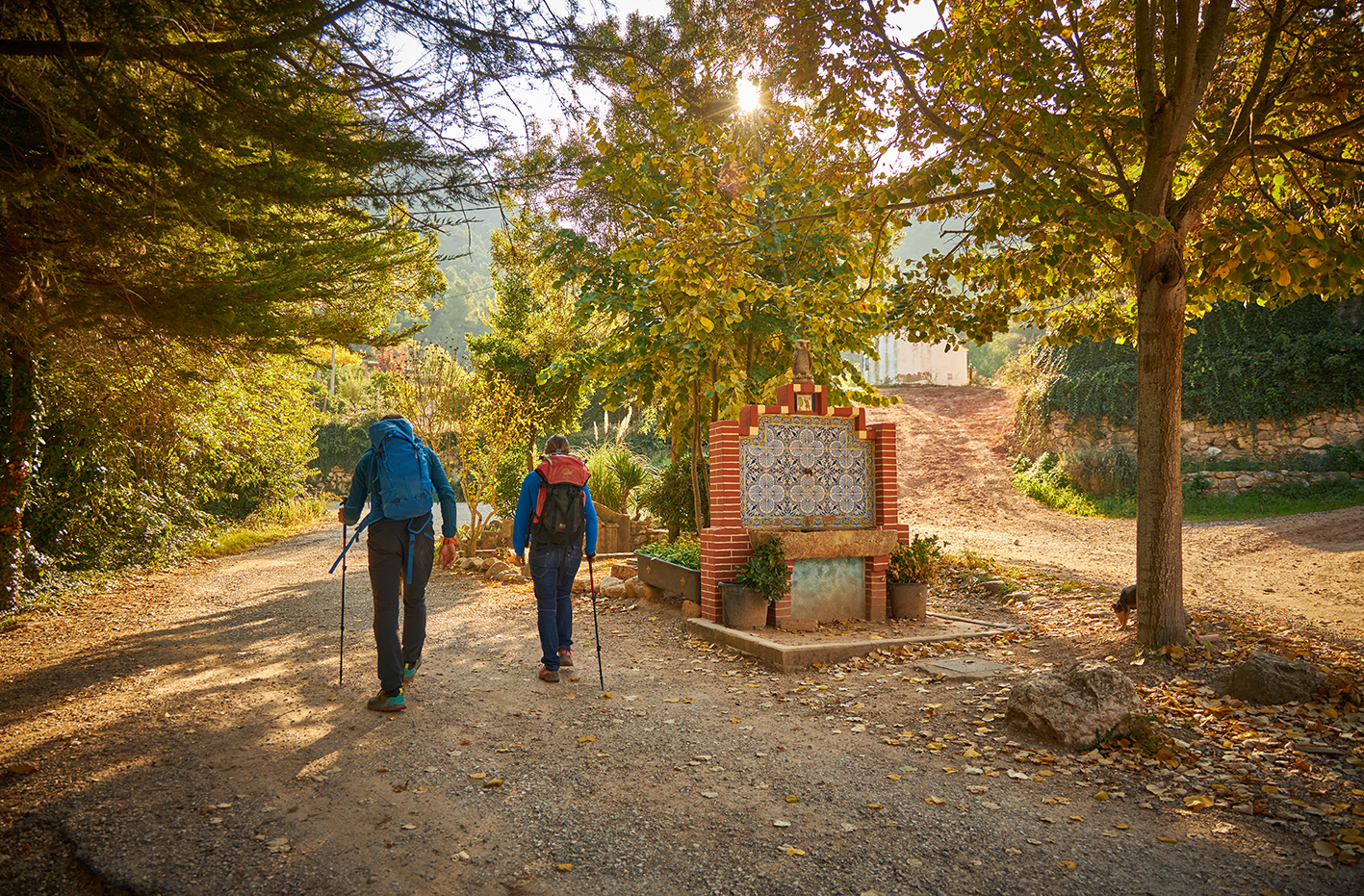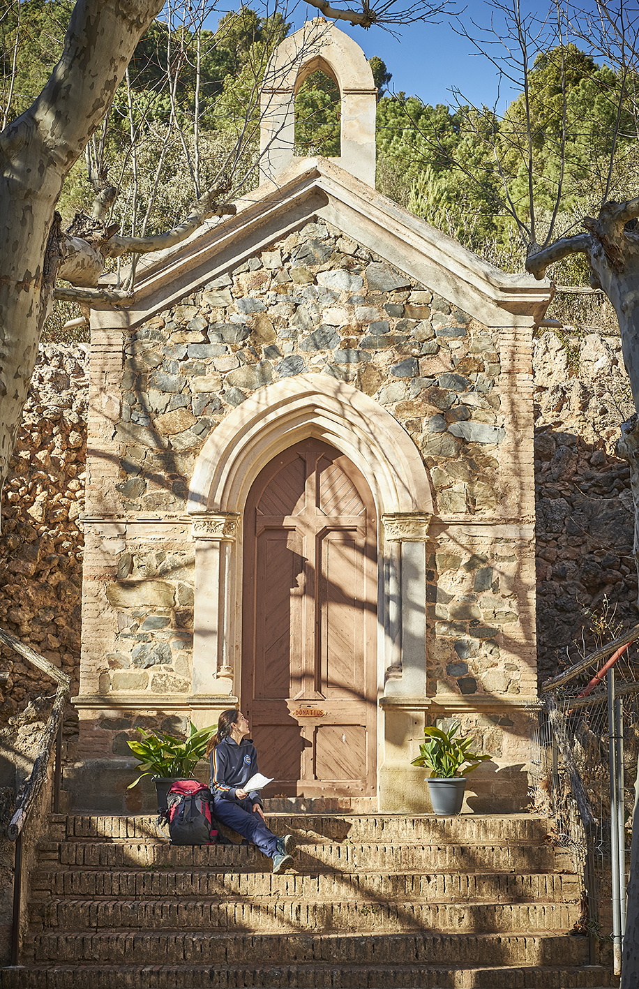 16,14 km. Font de Sant Salvador. En aquest punt, surt un corriol costerut que ens porta directament fins a l’antic castell de Prenafeta. El camí s’enfila per un terreny abrupte i exposat que convida a caminar amb molta atenció.