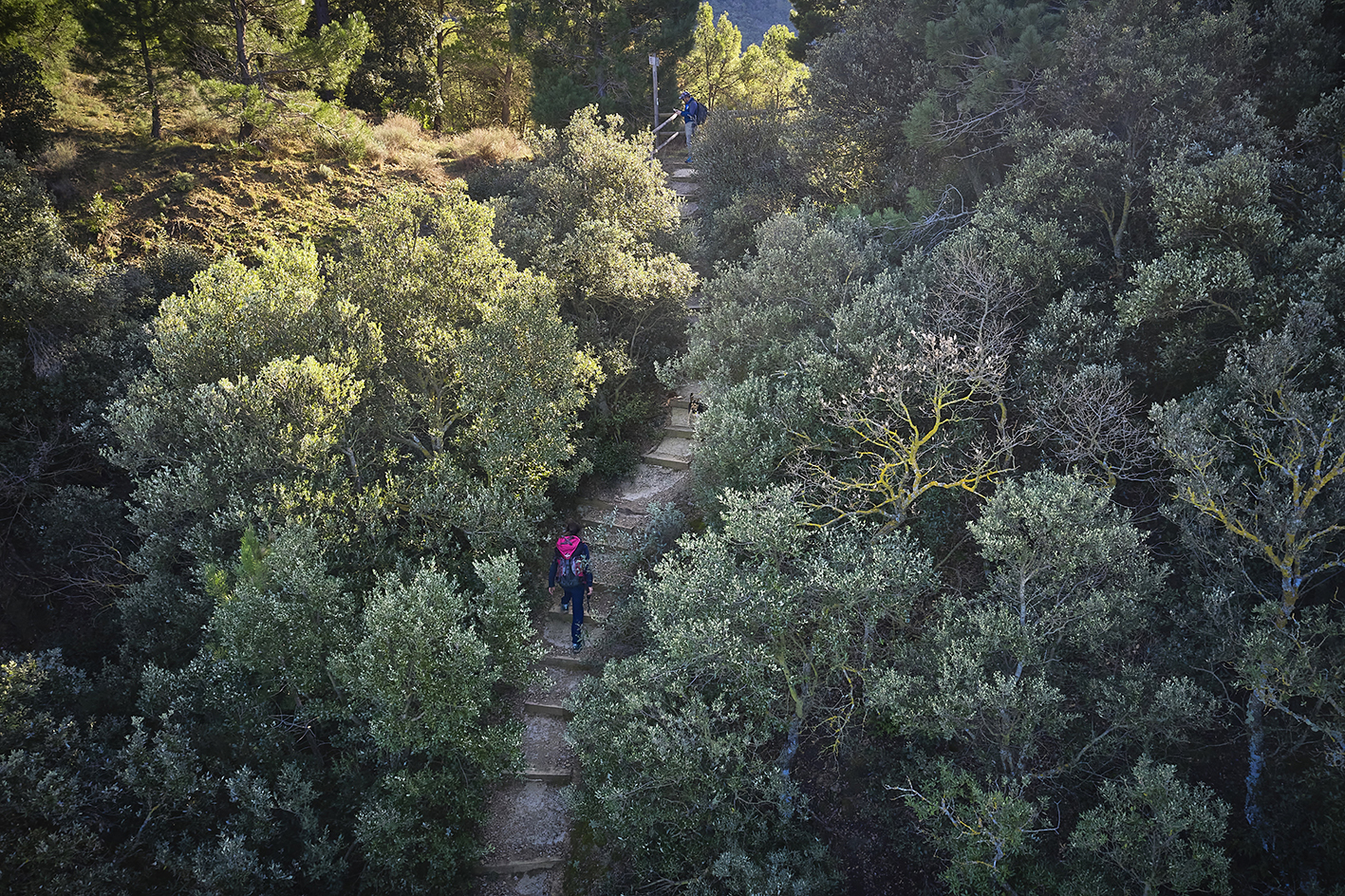 16,14 km. Font de Sant Salvador. En aquest punt, surt un corriol costerut que ens porta directament fins a l’antic castell de Prenafeta. El camí s’enfila per un terreny abrupte i exposat que convida a caminar amb molta atenció.