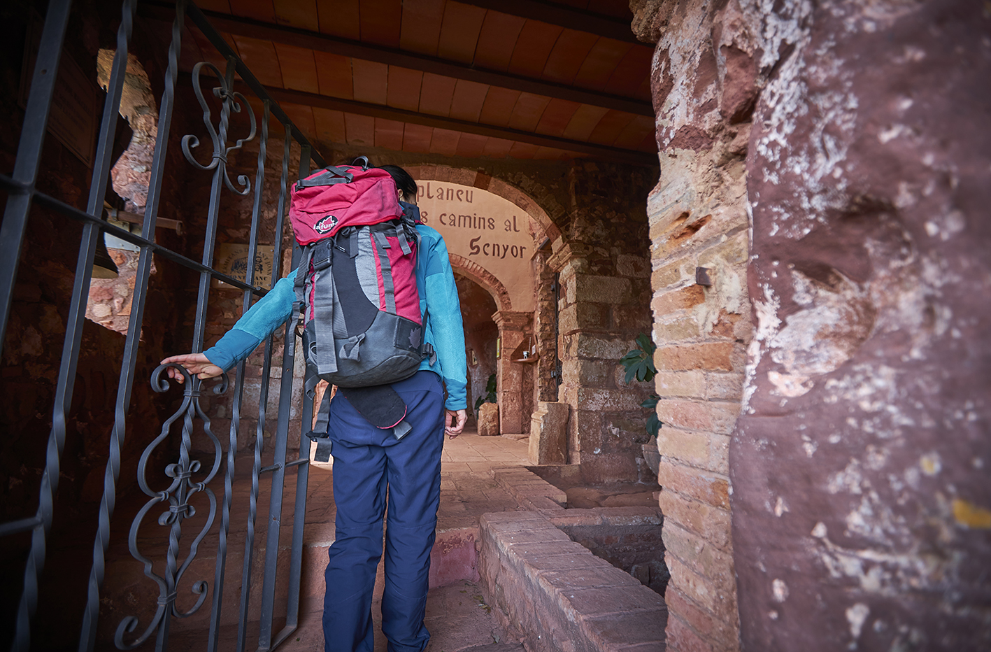 3,60 km (691 m). Ermita de Sant Joan de la Muntanya. Dins l’ermita hi trobem un punt de segellat del carnet 6T. Després de visitar l’ermita, continuem el nostre recorregut i baixem fins a l’encreuament. Unes escales esculpides a la roca roja ens portaran a un petit corriol. El camí baixa, puja i torna a davallar per fer cap a una pista. Continuem per la pista a l’esquerra.